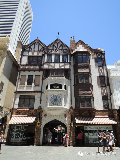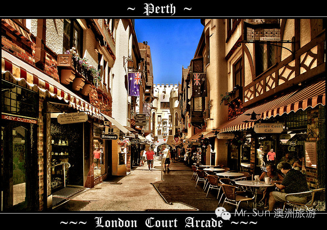 抵達後前往倫敦閣(London Court),它在珀斯市區,巷子兩邊弄成英式建築,中間有一個入口,乍一看以為是一棟房子,進去後才發現別有洞天.........
